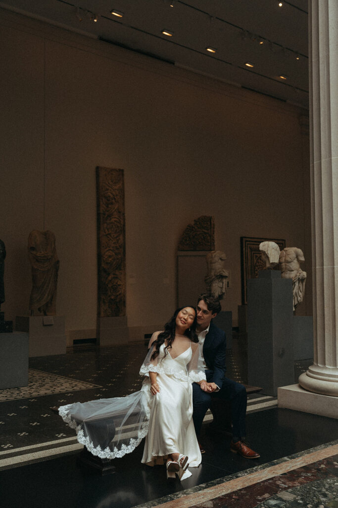 I love photographing couples at The Met, espeically when we have veils to play with and galleries to ourselves. But you still need a couple who understands how to exist in that space without trying too hard. Alex and Bardo got it immediately.