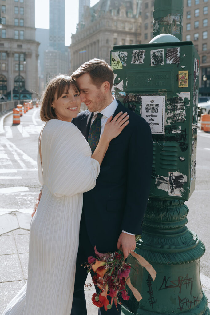 That’s the thing about City Hall weddings in NY – the chaos doesn’t stop for you. Tourists keep taking photos of the building. Workers keep rushing past with their lunch orders. Someone’s yelling into their phone about a problem you know nothing about. And somehow that makes your small, important moment feel both more intimate and more universal at the same time.